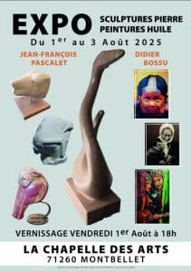 Didier BOSSU peintre et Jean François PASCALET sculpteur sur pierre seront les invités ce week-end à la chapelle des Arts.